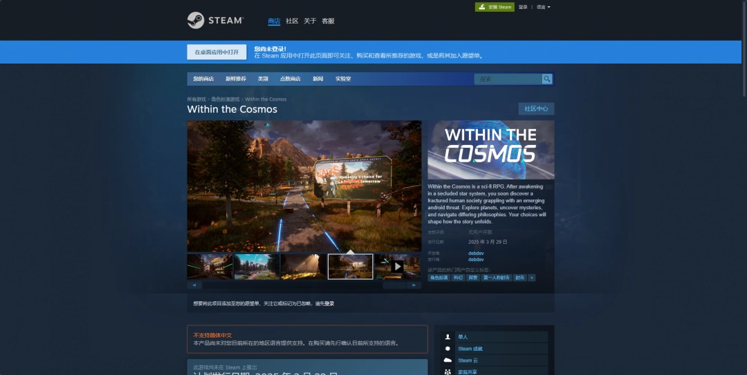可以去Steam平台下载,地址是:https://store.steampowered.com/app/618330/Within_the_Cosmos/。